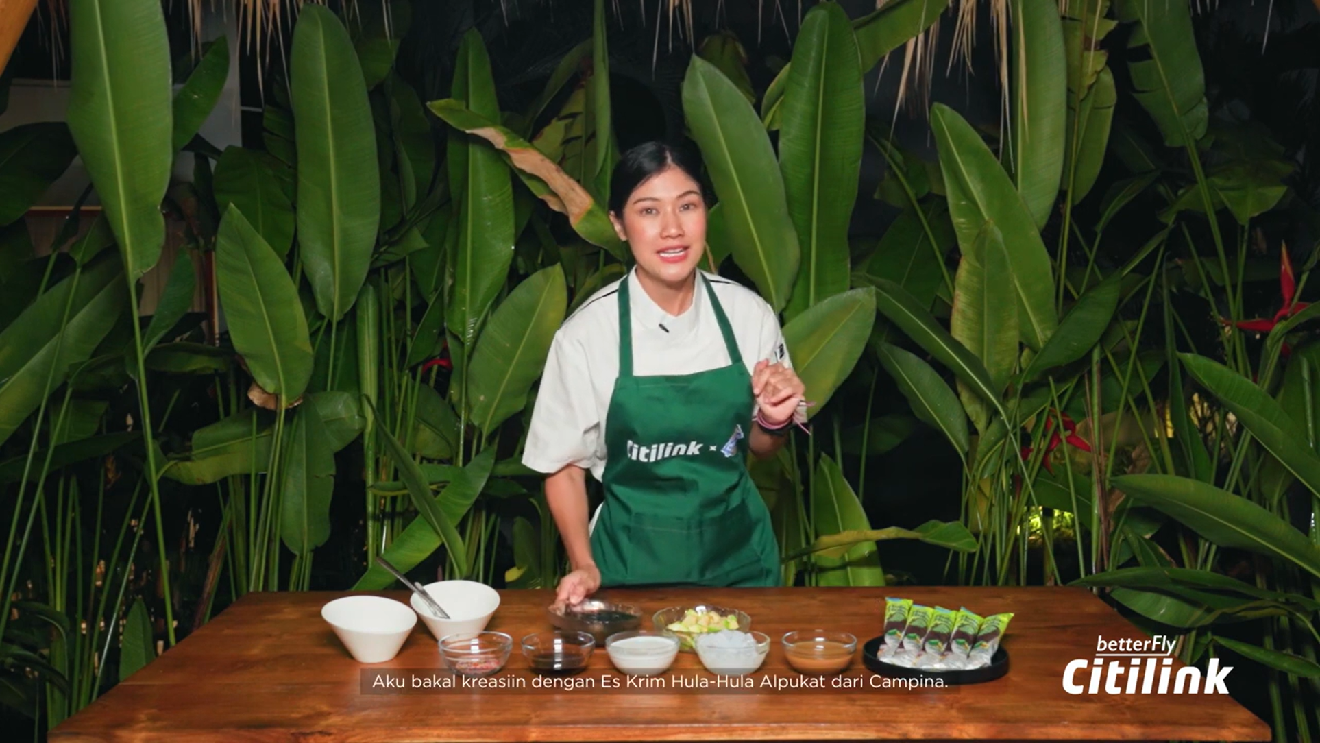 Selain menghadirkan challenge yang seru diatas pesawat, kolaborasi Campina dan Citilink juga menghasilkan co-video content creation. Campina dan Citilink menghadirkan Chef Olivia Tommy, dari Masterchef Indonesia season 8 bersama dengan seorang content creator, Ingga Suwandhana.