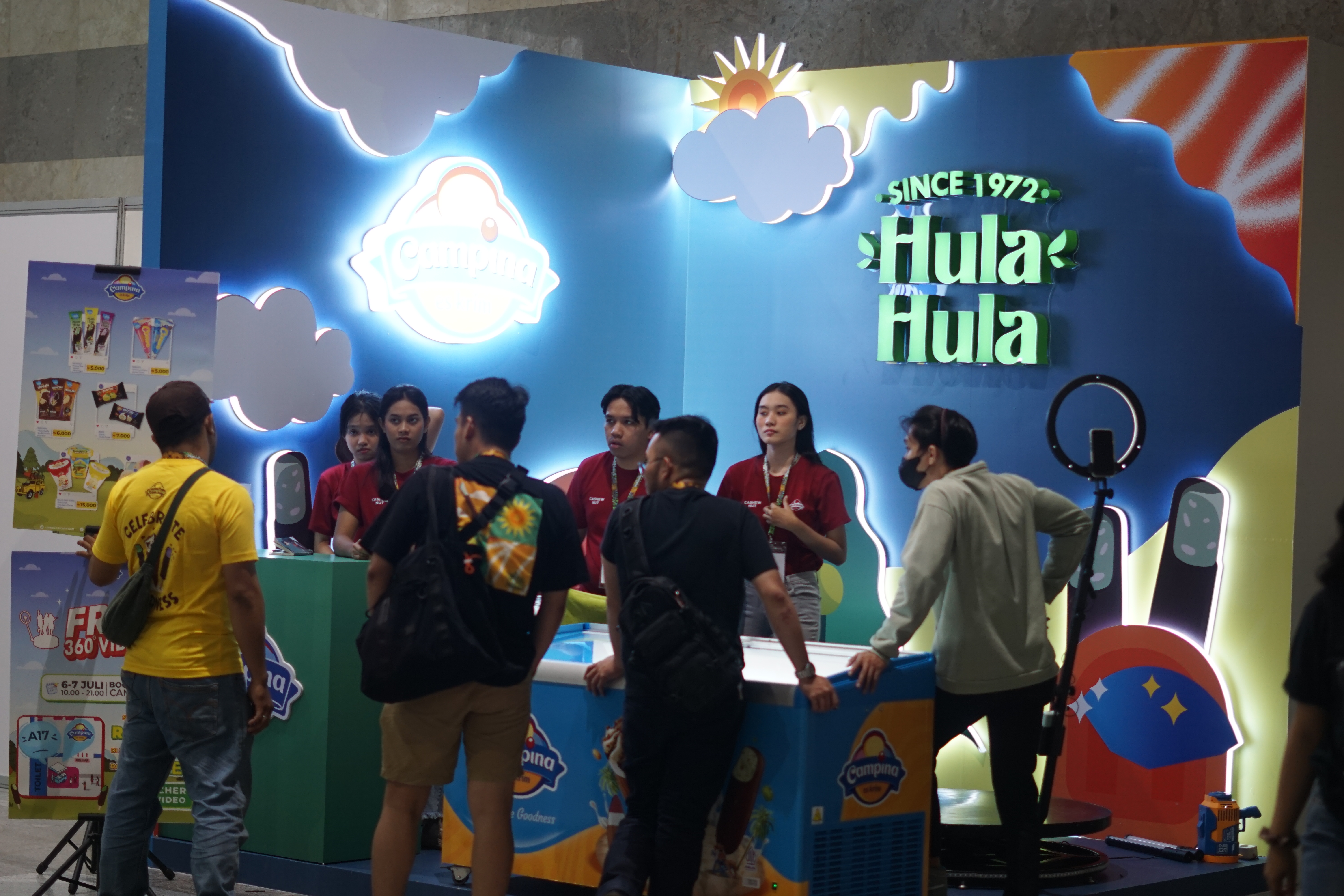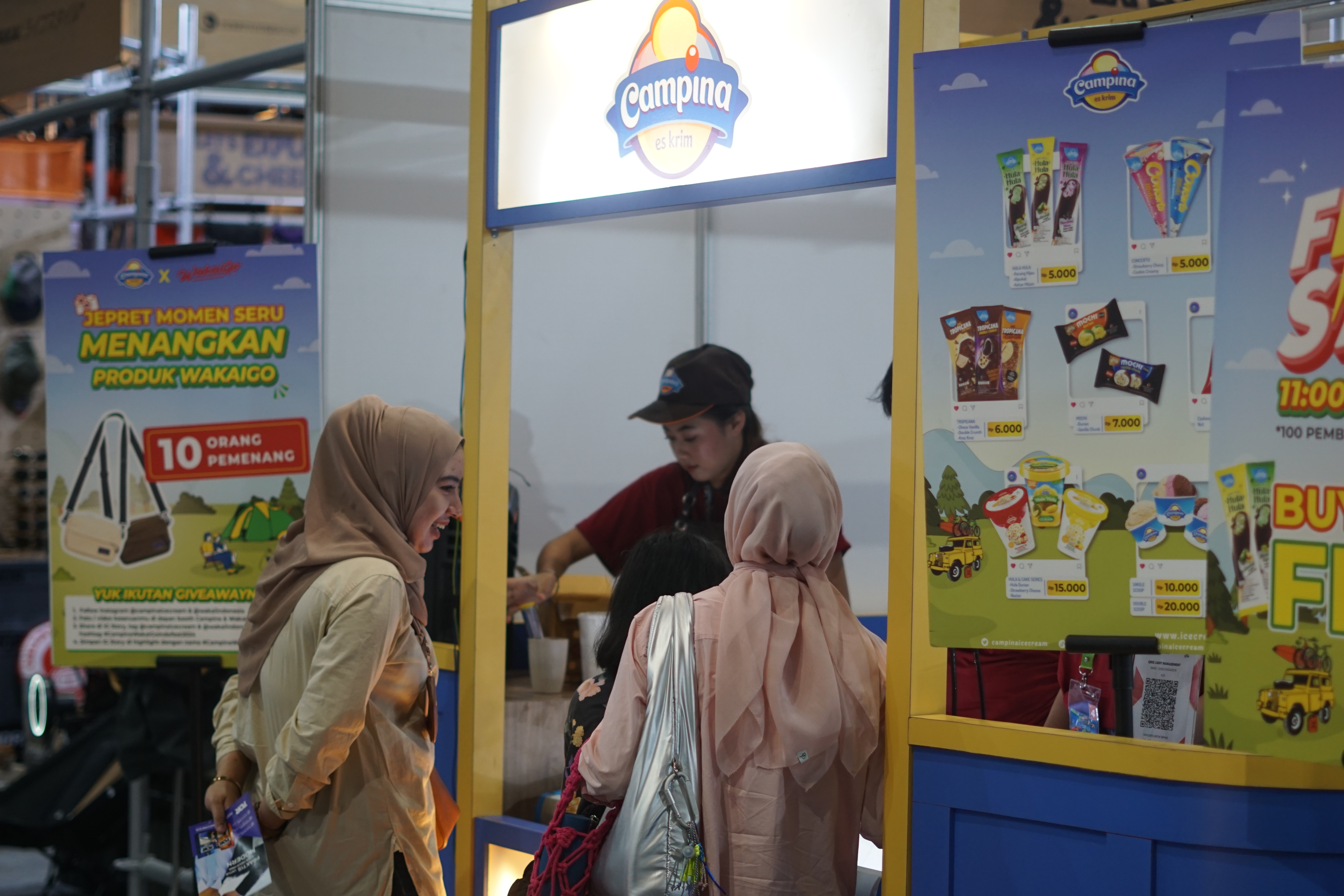 Banyak, tentunya. Ada promo FLASH SALE di setiap pukul 11.00-12.00 WIB di setiap harinya, beli 2 pcs Hula Hula varian apa saja, gratis 1 Concerto Midi Tiramisu, serta Free Video 360 setiap pembelian Rp 20.000 hanya di tanggal 6 & 7 Juli 2024. Di event ini, Campina berkolaborasi dengan merek fashion ternama Wakai, dengan co-activation di booth, yang kebetulan posisinya saling bersebelahan.