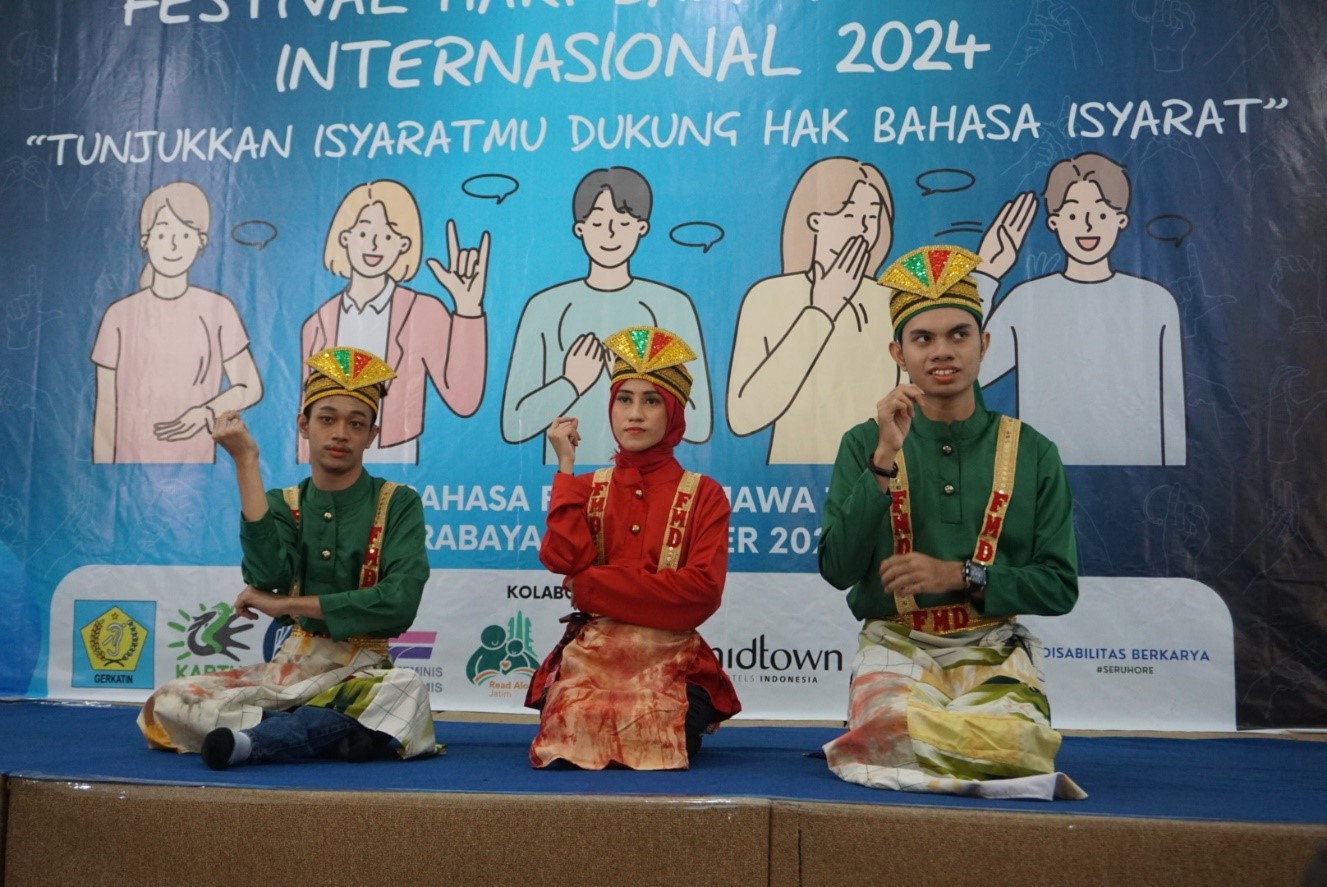 Penampilan Tari Saman dari Fira Modelling Disabilitas dalam acara Festival Hari Bahasa Isyarat Internasional 2024, 5 Oktober.
