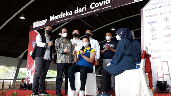 PT Campina Ice Cream Industry, Tbk kembali aktif berperan serta membantu pemulihan ekonomi dalam penanganan Covid-19 melalui program Corporate Social Responsibility (CSR) nya. Kali ini, Campina mendukung program “Vaksinasi Merdeka Covid Pelaku Usaha” di arena Jatim Expo-Surabaya, Jawa Timur, hari Sabtu, 4 September 2021. Program ini diselenggarakan oleh Pemerintah Kota Surabaya dan Kamar Dagang dan Industri (KADIN) Kota Surabaya, dalam rangka mencapai kekebalan kolektif (herd immunity), khususnya bagi pelaku bisnis, perusahaan, dan UMKM di Surabaya.