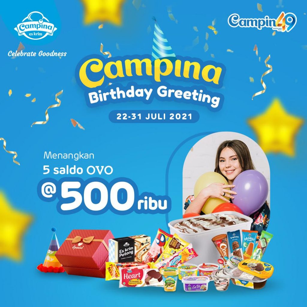 Dan sebagai bentuk ucapan terima kasih atas ucapan-ucapan yang masuk di media sosial, kami mempunyai total Rp2.500.000 saldo OVO yang akan kami bagikan ke 5 (masing-masing Rp500.000) pengirim video ucapan ulang tahun Campina ke 49 tahun yang paling keren dan kreatif.